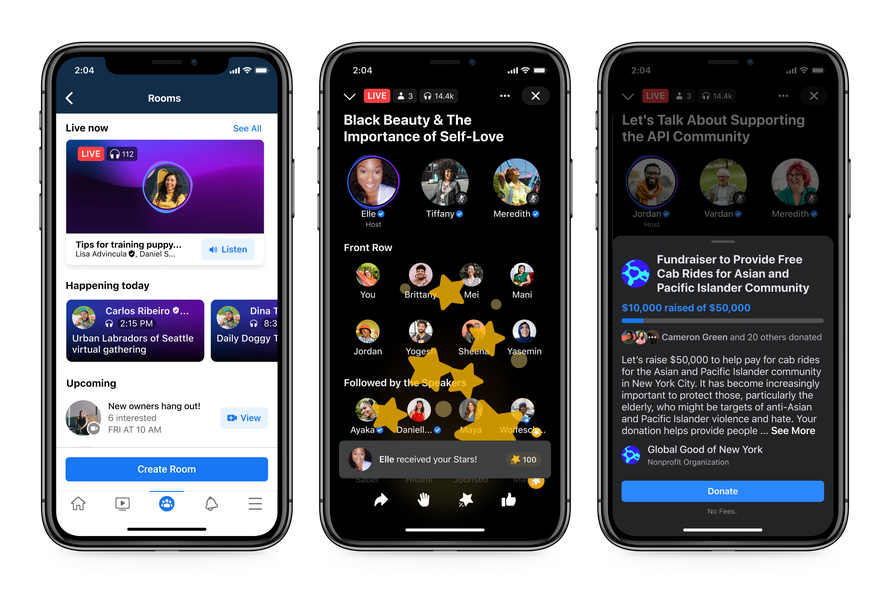 La compañía está preparando una serie de nuevas funcionalidades dentro de Facebook para los usuarios y la posibilidad de monetización de los creadores. Estas funciones llegan en un momento en el que Clubhouse está en su pico de popularidad e introduciendo un formato hasta ahora no muy explorado: las salas de audio en directo. Facebook no es la única, también Spotify, Telegram, Slack, Discord o Microsoft.