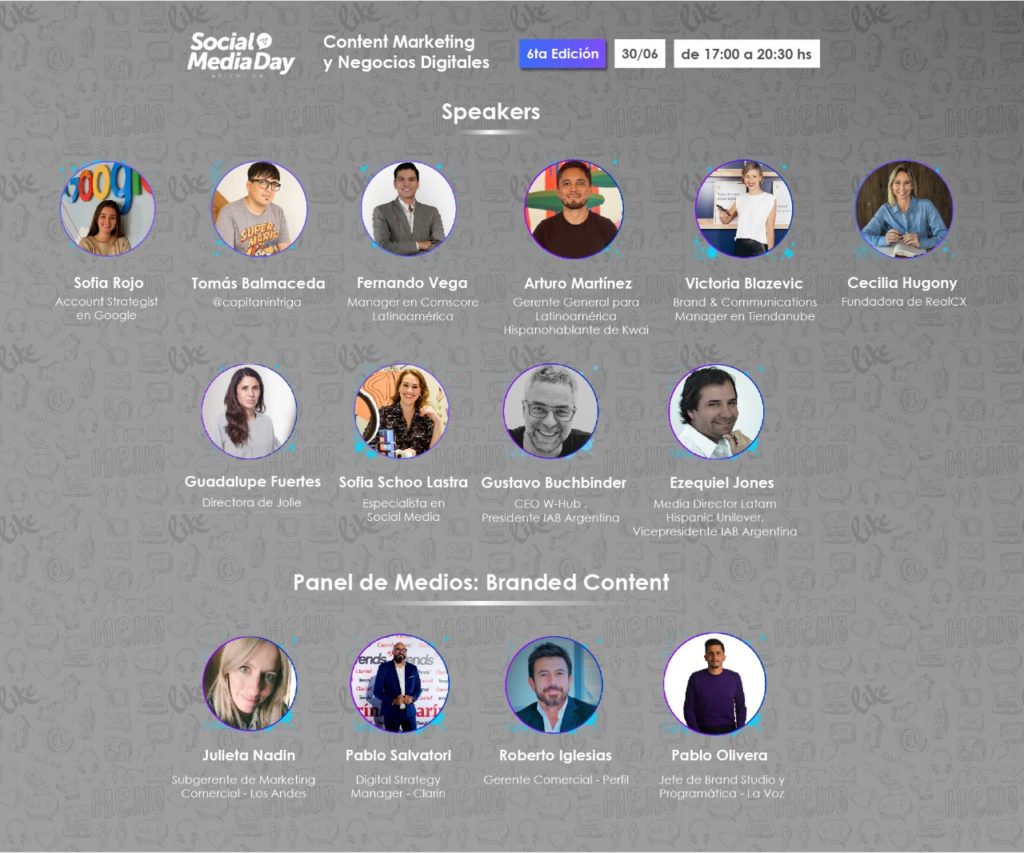El próximo miércoles 30 de junio, el Día Mundial de las Redes Sociales, de 17 h a 20.30 h, se realizará la 6° Edición del Social Media Day y en esta oportunidad, el eje temático será “Content Marketing y Negocios Digitales”. En el encuentro online y federal destacados oradores del ámbito digital expondrán sobre temas relacionados a redes sociales como videos cortos, e influencers, marketing digital, branded content, content marketing, customer service, video marketing, YouTube y social ecommerce, entre otros.