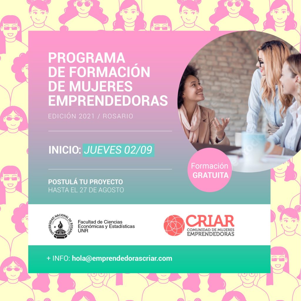Desde CRIAR, Comunidad de Mujeres Emprendedoras lanzan el Programa de Formación de Mujeres Emprendedoras, junto a la Facultad de Ciencias Económicas y Estadística de la Universidad Nacional de Rosario.